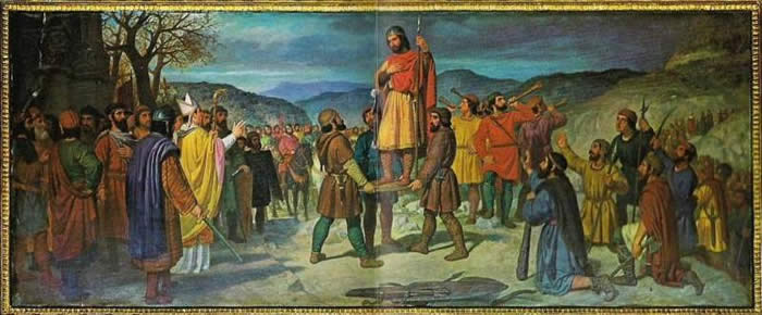 le Prince et la Princesse de Viane, ducs de Calabria * * * Certains historiens de renom comme Jaime Ignacio del Burgo estiment que depuis 1515 on doit appliquer la même loi de succession en Castille et en Navarre pour assurer l'indissolubilité de ce qui était considéré comme une «union réelle" entre les deux couronnes. Cet historien invoque Ferdinand le Catholique lorsqu’il a décidé que, désormais, ce serait sa fille Jeanne «la Folle» et ses héritiers dans les royaumes de Castille et de Leon qui devraient aussi régner en Navarre. À notre avis, qu’ il s'agisse d'une «union réelle» ou une «union personnelle», la confirmation par les traités d'Utrecht d’un membre de la dynastie Bourbon, le duc d'Anjou, comme roi d'Espagne (Felipe V), altera les normes de succession au trône de Castille et d’autres règnes des « Espagnes», mais pas les normes de succession au trône de Navarre qui sont restées inchangées. Et il est interessant d’approfondir cette question. Les événements de 1512 qui ont conduit à l’évincement du trône de la reine Catherine Ier de Navarre Foix-Grailly-Béarn, avaient comme motivation fondamentale - à la fois, de la part de Ferdinand le Catholique et du comte de Lerin - forcer un changement dynastique pour éviter que le royaume de Navarre, en detriment de sa neutralité, puisse tomber irreversiblement dans l'orbite de la monarchie française. Mais ce changement, qui est certifié en Juin 1515 au moment de l’incorporation de la couronne de Navarre dans celle de la Castille, ne devait pas altérer ni les institutions privatives (Parlement, Conseil Royal, Cour Supérieur et Chambre des Comptes), ni la structure politico-monarchiste du vieux royaume de Navarre. Ce sera quelques mois plus tard, après la mort de Ferdinand le Catholique en Janvier 1516, quei sera forgée définitivement l'unité nationale de l’Espagne sous une seule Couronne, celle de Jeanne «la Folle», héritière de Ferdinand et Isabelle, les Rois Catholiques. Il est cependant discutable si par raison du changement dynastique forcé par les armes, même s’il avait respecté la Navarre comme un « «Royaume de lui-même» ou « Reino de por sí », selon ce que reconnaîtra explicitement en 1516 Charles de Gante, le futur empereur Charles Quint, ont été modifiées ou non les règles de succession dans le Reyno de Navarre. Dans le cas où l'on opterait pour l’opinion selon laquelle l’incorporation dans la couronne de Castille avait été une «union personnelle» sous la reine Jeanne I de Castille et IV de Navarre, la conclusion pourrait être différente que si l'on optait pour l’opinion qu'il s'agissait d'une « union réelle » ou absorption "de facto" ou "annexion" du royaume de Navarre par la Castille. Dans le cas d'une «union personnelle» on maintiendrait en vigueur en Navarre les normes du For Général (« Fuero General ») et / ou du Parlement (« Cortes ») du Royaume. Tandis que, dans une « union réelle » sous la couronne de Castille, Leon et Granada, les règles de succession du royaume de Navarre seraient désormais les mêmes applicables à la couronne de la Castille. Après 1515, la Navarre a toujours été considérée "de jure" comme un "Etat souverain", dans la terminologie moderne, bien que que "de facto" il s’agit d’une «annexion». Et si officiellement on utilisa la notion juridique «d'union personnelle" cela fut sans doute pour faciliter ou adoucir les effets de l'occupation militaire et placer les navarrais dans une situation plus acceptable pour rendre hommage au roi Ferdinand en apaisant les insurrections auxquelles on aurait pu s’attendre. Si cela avait été une «union réelle», les systèmes juridiques auraient alors prévu l'existence d'une sorte d’union applicable, non seulement au partage de la direction de l'Etat en la personne du monarque, mais au maintien de certains organes juridiques et des institutions communes. Dans le cas des royaumes qui avaient formé la Castille, soit les Asturies, la Galice et León, de nombreuses institutions ont été maintenues en commun en plus d'avoir le même roi. Mais cela n'avait pas été le cas de la Navarre, laquelle non seulement n’avait pas partagé des institutions avec la Castille, mais avait conservé les douanes entre les deux royaumes jusqu'au XIXe siècle, à l'exception d'une brève période sous le règne de Felipe V. Si au terme de la Guerre de Succession, le roi Philipe V ordonne en novembre 1714 «que soient éliminées toutes les douanes existantes entre la Castille, l’Aragon, Valence et la Catalogne et que ces deux Royaumes d’Aragon et de Valence et la Principauté de Catalogne soient dorénavant considerés comme provinces unies à la Castille, de façon que le commerce puisse s’établir et se développer entre tous ces territoires sans aucun entrave», ces décrets ne seront pas appliqués en ce qui concerne la Navarre, laquelle maintiendra les douanes avec les royaumes hispaniques voisins, mais pas, selon la tradition, avec la France. Par raison des décrets de “Nueva Planta” signés entre 1707 et 1716 par le roi Felipe V ont été abolis quasi tous les anciens fors propres des royaumes et comtés de la Couronne d'Aragon (Aragon, Valence, Catalogne, Mallorque, excepté dans le Val d'Aran), étendant une nouvelle organisation politico-administrative basée sur celle de la Castille à tous ses domaines. Les Cortes (ou «êtats généraux») des differents royaumes sont dissous, étant reconverties les Cortes castillanes en Cortes communes à tous les territoires de l’Espagne, uniquement exceptée la Navarre qui va les maintenir jusqu’en 1841. Dans le cas d'une «union réelle», il aurait été exigé l’existence d’un contrat entre égaux prévoyant la création des institutions communes de gouvernance, ce contrat devant de par sa nature être volontaire: Si ce «contrat» devait être imposé par la force, il s’agirait dans ce cas,