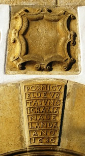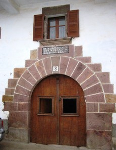En el exterior, una puerta adintelada sobre ménsulas de piedra.