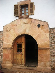 portada de arco apuntado y ventana geminada en una casa en Uriz