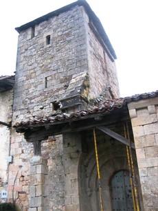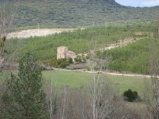 * otra torre, en esta caso torre-palomar, se localiza en la parte de abajo. Consta de un fuste macizo de pequeño sillar con ventanas y saeteras dispuestas a la altura de unos matacanes. La torre parece haber sido recrecida.