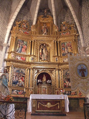 De la construcción primitiva son los dos tramos de los pies y del siglo XIV datan la cabecera pentagonal con ocho nervios, tres tramos de bóveda de crucería y la capilla de San Veremundo, a la que se accede por un arco apuntado. El coro, el arco de ingreso a la capilla del Santo Cristo, la sacristía, la portada principal y las ménsulas de la capilla de San Veremundo son del siglo XVI.