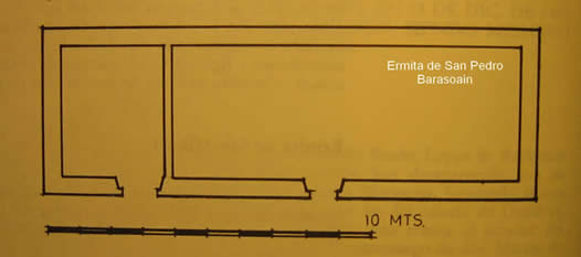 Presenta planta de nave única rectangular, de sillarejo, cubierta con bóveda de medio cañón rebajado.