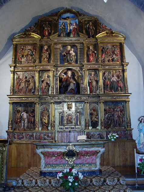 Adaptado a la cabecera se encuentra un hermoso retablo tardorromanista del primer tercio del siglo XVII. Los relieves y la escultura responden al gusto estético del romanismo con sus figuras de imponente anatomía, voluminosos ropajes y rostros carnosos redondeados. Destaca la Virgen con el Ñiño. Se conserva la policromía original. El sagrario-expositor en forma de templete es de estilo barroco, del siglo XVIII.