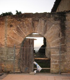 Se abre en la fachada una puerta de arco apuntado con escudo en la clave de campo cuartelado.