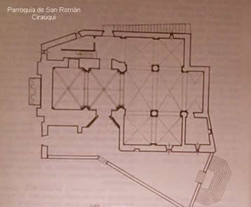 Se localiza adosada al muro hastial de la parroquia de San Román, entre dos amplios contrafuertes rectangulares de la torre.
