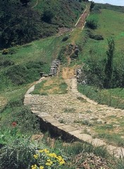 Junto al puente puede observarse parte de la antigua calzada romana que es Camino de Santiago.