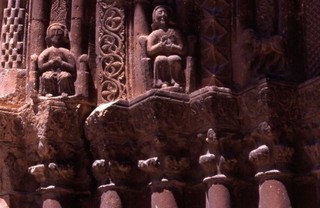 Entre la portada y la torre se encuentra una gran hornacina de arco de medio punto más un segundo cuerpo de arco rebajado que se decora con bolas Reyes Católicos del siglo XVI y que se hizo probablemente al construir el coro.