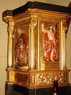 Junto al retablo mayor se conserva un sagrario de piedra empotrado en el muro, del siglo XVI, con la reja original decorada con rosetas en torno a los clavos.