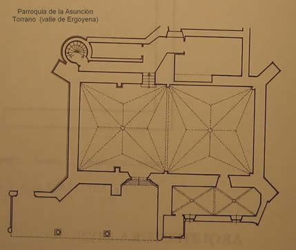El coro se alza a los pies de la nave y se le adosa una escalera de caracol. La sacristía se cubre por un cielo raso y queda adosada a la cabecera por el lado de la Epístola.