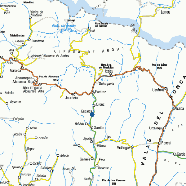 Se localiza en la parte baja del pueblo, sobre el río Salazar que recibe en Esparza dos arroyos.