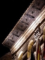 Construcción barroca del siglo XVIII, consta de dos cuerpos con ático. En el primer cuerpo hay tres grupos de columnas casi exentas de fuste acanalado, sobre parejas de pilastras cajeadas, con ricos capiteles.