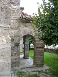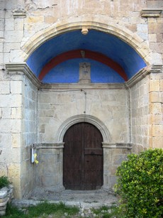Al exterior, la puerta es un sencillo arco apuntado. La torre de época medieval se alza a los pies de la nave.