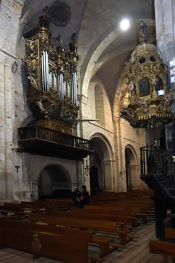 En la nave central apoya un p�lpito con gran tornavoz barroco del siglo XVIII. Frente a �l, un �rgano barroco de 1660. A los pies del templo hay un cancel de madera del siglo XVIII.