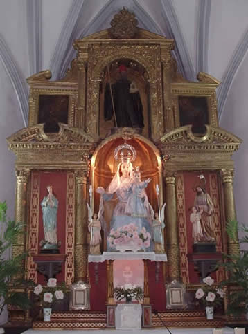En el lado de la Epístola se encuentra otro pequeño retablo prechurrigueresco de Nuestra Señora del Carmen, de hacia 1700.