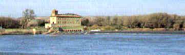 Detrás del palacio se sitúa la vieja presa en el río Ebro que levantó Gil de Morlanes hacia 1528. Se trata de una obra de sillería. A finales del siglo XVIII (1770-1790) se hizo otra presa y la casa de Compuertas aguas arriba, cercana a la anterior, ejecutada por iniciativa del canónigo aragonés Ramón de Pignatelli y Moncayo.