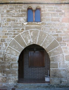 La portada consiste en un arco de medio punto que inscribe la fecha de 1628 en la clave.