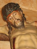 En este mismo lado del Evangelio cuelga una espléndida talla gótica de Cristo Crucificado muerto, sobre cruz de gajos, de finales del siglo XIV o principios del XV, que procede de la Ermita de la Santa Cruz. La reja que cierra la capilla bautismal es una copia moderna de modelos góticos, siendo también moderna la pila bautismal. En este lugar se guardan dos hacheros barrocos del siglo XVIII, con dorado de época.