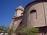 El exterior presenta una pureza volumétrica propia del estilo neoclásico, resaltando especialmente, por original, las formas absidiales de los brazos del crucero.