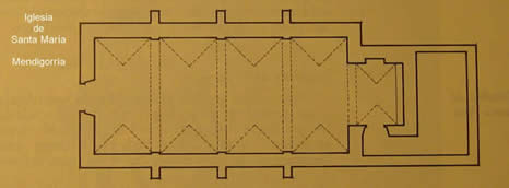 Presenta planta de cruz latina con nave única de cuatro tramos, cabecera pentagonal y coro alto a los pies, más dos capillas adosadas y en línea con los brazos del crucero y una tercera capilla más pequeña abierta al tercer tramo de la nave por el lado del Evangelio. Esta traza engloba la estructura del siglo XVI que se conserva íntegra en la cabecera, crucero y nave, excepto en el tramo de los pies. La capilla mayor se cubre con una bóveda gallonada. Las restantes bóvedas de la nave y brazos del crucero componen sencillas estrellas de cuatro puntas. El crucero muestra una rica bóveda estrellada con ligaduras, combados y diagonales rectos de sección mixtilínea. Corresponde también al siglo XVI la sacristía que queda adosada a la cabecera por el lado del Evangelio, cubriéndose con una elegante bóveda estrellada, muy similar a la del crucero.