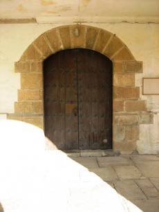 Al exterior, una puerta adintelada de ingreso enmarcada por sillares de gran tamañao y con dintel de madera.