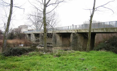 Se trata de un puente medieval de cinco ojos de medio punto entre tajamares, recientemente modernizado.