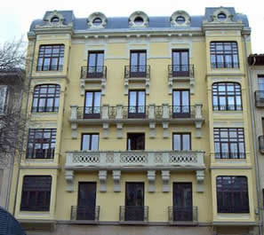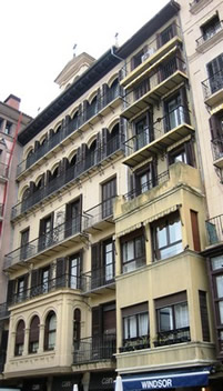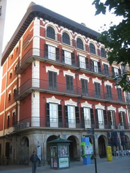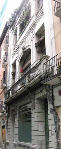 En la calle MERCADERES - antigua calle del Mentidero hasta comienzos del siglo XVIII - la mayoría de las fachadas fueron renovadas a finales del siglo XIX y principios del XX, incorporando adornos de yesería e introduciendo miradores de madera. El escaparate y el interior de una farmacia de 1905 es uno de los pocos ejemplos de diseño modernista en Pamplona.