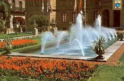 * la Beneficiencia, o de la Abundancia, (1800), conocida como la "Mari BLanca", ”; tiene vocación itinerante, ya que primero estuvo en la fuente neoclásica de Luis Paret en la Plaza del Castillo (desde 1790 hasta 1912), luego fue al centro de la Plaza de San Francisco, y, finalmente en 1927 se trasladó a los jardines de la Taconera