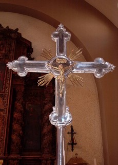 Entre las piezas de orfebrería, un cáliz de plata y una cruz parroquial.
