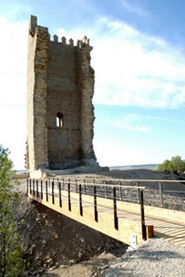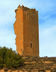 Del antiguo castillo de Santacara se conserva en lo alto del monte, que domina la población, el muro de un imponente torreón.