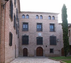 * escudo de madera policromada con las armas del Arzobispo cisterciense Fernando de Aragón, del siglo XVI.
