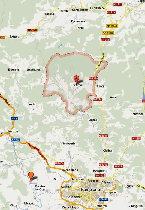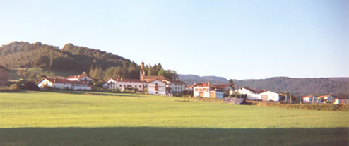 Se localiza en la falda del monte Loiketa, en la calzada del valle de Baztán a Lanz, que formaba parte del ramal jacobeo que unía Bayona con Arre y Pamplona, por Urdax y Velate.