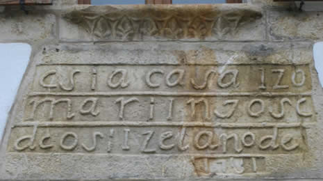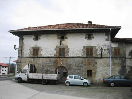 * casa Echebercea, con fachada de sillar de dos niveles y un recrecimiento superior de sillarejo. La portada es de arco de medio punto con la rosca moldurada y dovelaje propio del siglo XIX. Sobre ella se abre una ventana recta entre columnas dóricas que apoyan en un antepecho con bolas. Encima se encuentra un balcón corrido de madera. Luce un blasón del siglo XVII.