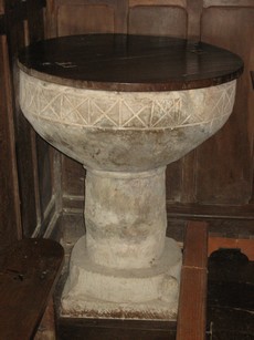 En un pequeño nicho se guarda la pila bautismal tardogótica, de finales del siglo XII o principios del XIII.