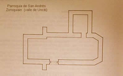Construcción originaria del último tercio del siglo XII, en el círculo de influencias de Loarre. Constituye uno de los más bellos ejemplos de arquitectura románica rural de Navarra, relacionándose con las ermitas San Pedro ad Vincula de Echano (Olóriz, merindad de Olite) y Santo Cristo de Catalain (Garínoain, merindad de Olite) o la iglesia N. S. de la Asunción de Olleta (Leoz, merindad de Olite) en la Valdorba, el monasterio San Jorge de Azuelo (merindad de Estella) o la iglesia Santa María de Arce (despoblado de Arce, valle de Arce, merindad de Sangüesa). Diversos trabajos constructivos se suceden hasta el siglo XVI. Del período románico del siglo XII son la portada, el ábside y la hilera de canes que recorren el alero; del XIII la bóveda de cañón apuntado de los dos primeros tramos de la nave, la torre y la escalera de caracol; finalmente, son del siglo XVI las bóvedas de terceletes de los dos tramos intermedios de la nave y la capilla lateral que muestra reminiscencias góticas, como la bóveda de crucería.