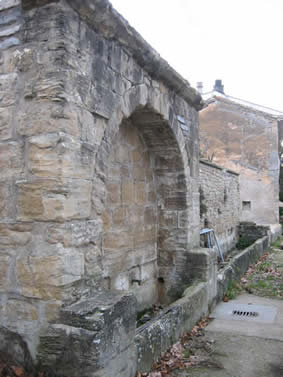 En un nicho del sotocoro se encuentra una pila bautismal de época románica.
