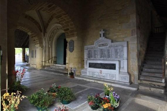 L'entrée est protégée par un très beau porche de style roman daté du XIVe siècle.