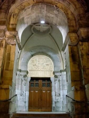 Sur les lieux de ces apparitions, l'Eglise entreprend l'édification de 40.000 mètres carrés de constructions: le premier sanctuaire, inauguré en 1871, dû à l'architecte Hippolyte Durand, la basilique du Rosaire, terminée en 1889, due à l'architecte Léopold Hardy et la basilique souterraine Pie X, réalisée de 1956 à 1958 par l'architecte Pierre Vago. Cette basilique, couvrant une surface de 14 000 mètres carrés et portée par 29 portiques en béton précontraint, étudiés par l'ingénieur Eugène Freyssinet, peut accueillir 20.000 pèlerins. L'espace intérieur, libéré des piliers, permet le rassemblement des fidèles autour de l'autel central. A l'extérieur, cette basilique est simplement signalée par une vaste surface gazonnée de forme ovoïde.