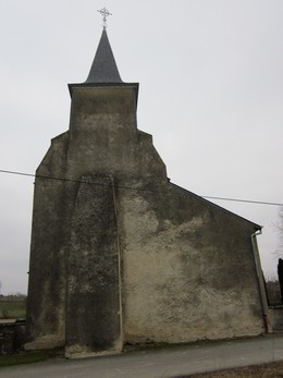 Eglise restaurée et agrandie de 1877 à 1879 par l' entrepreneur Labourie; clocher reconstruit en 1880 par l' entrepreneur Moneing.