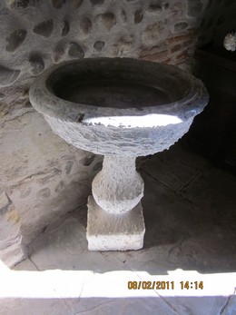 fonts baptismaux dans le baptistère et bénitier