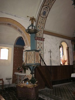 Peintures murales du XIXème siècle à l' intérieur de l' église, dans le choeur notamment et près du baptistère. On constate sur le cadastre de 1837 que le cimetière est accolé à l' église, côté ouest. Déplacé après 1837 sur une parcelle plus grande, au sud-ouest de l' édifice.