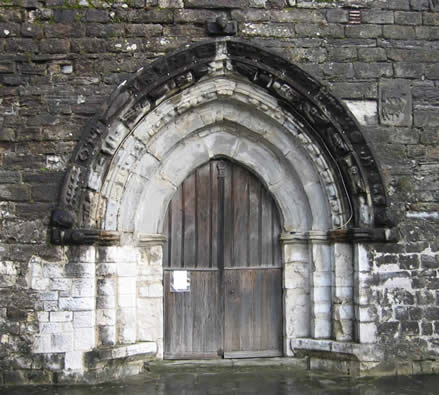 Ce qui frappe tout d'abord ce sont les trois voussures de la porte ogivale, et les reliefs variés, hommes, animaux, plantes et autres figures qui s'en détachent. En voyant l'ogive on pense au XIIIème siécle, mais la taille frustre de ces moulures dénote une origine plus ancienne.
