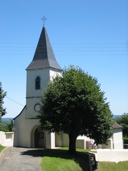 Eglise romane remaniée à plusieurs reprises. Clocher reconstruit vers 1896-1897.Le décor peint du choeur (Assomption) fut exécuté dans le dernier tiers du 19e siècle par le peintre Léonard Fortuné (celui-ci travailla notamment dans les églises voisines de Sauvagnon et de Poey-de-Lescar, et son style est ici aisément identifiable).