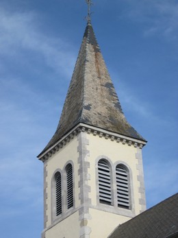 * clocher-porche, nef de 4 travées à arcades en plein cintre