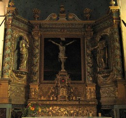 A l' intérieur, décor de qualité: tribune, retable et chaire du XVIIIème siècle, lambris et peintures du XIXème siècle.