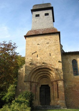 Eglise romane construite XIème siècle mentionné en 1104, complétée par un gros clocher carré à l' époque gothique. Elle entra dans l’histoire quand le vicomte du Béarn Gaston IV "le Croisé" (+ 1131) et le comte d’Armagnac jurèrent en 1104 sur son autel, « de se garder la paix et la trêve de Dieu ».