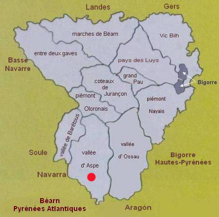 Après l' échec en 1848 d' un projet de restauration de la vieille église (en contrebas du village et éloignée du centre) par l' architecte oloronais Liaras, et celui d' un premier projet de reconstruction par Sorbé, autre architecte oloronais, la conseil municipal approuve en 1850 un nouveau projet d' église "en style roman" au centre de la commune, par l' architecte palois Emile Loupot. En 1858, l' entrepreneur Jean-Pierre Larrieu commence les travaux et l' ancienne église est démolie.