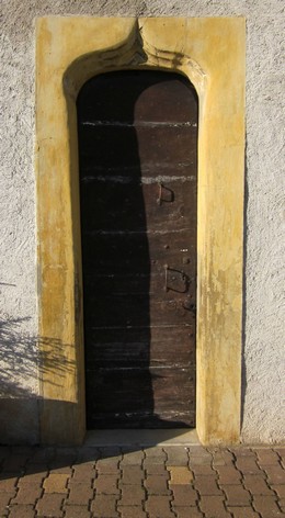 Le portail sud est encadré d'un décor du XVIème siècle, protégé par un porche en appentis porté par un pilier décoré d'un blason et au fond duquel s'ouvre une porte en anse de panier.