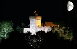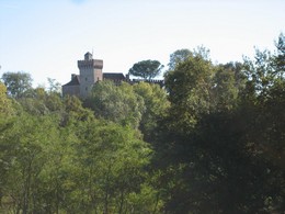 Imposante forteresse de brique, formée d'une enceinte polygonale autour d'un logis seigneurial de la fin du XVIe siècle. Château sur motte situé à l' extrémité sud du village construit vers 1370 par l' architecte fuxéen Sicard de Lordat pour le frère naturel du vicomte Gaston III Fébus (+ 1391), Arnaud-Guilhem, afin de surveiller la Gascogne anglaise. Il existait au même emplacement un édifice antérieur dont on ne possède aucune description. De même, on ne connaît pas l' emplacement de la chapelle castrale.