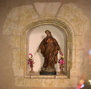 Voûté en cul-de-four, surélevé et abrité par un appentis couvert de tuiles plates.
