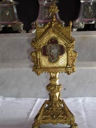 des vêtements sacerdotaux conservés dans le chapier, meuble curieux et imposant du XIXème siècle